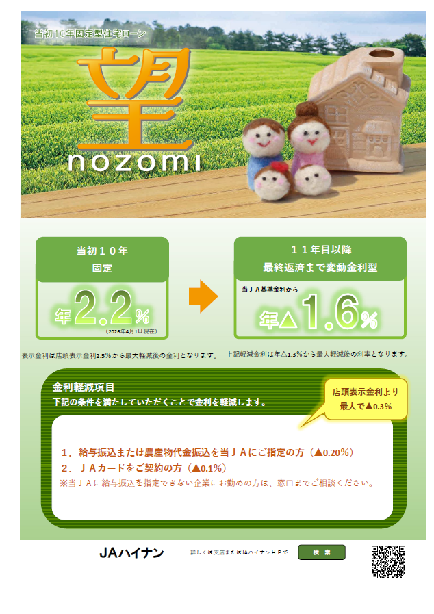 目的に合わせた各種ローンを取り揃えてあります。